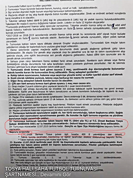 Tosya'da düzenlenecek olan Tosya Kaymakamlığı tarafından, Gençlik Hizmetleri ve Spor İlçe Müdürlüğü ile Tosya İdmanyurdu Spor Kulübü’nün koordinasyonunda, 15 Temmuz Şehitleri Anma, Demokrasi ve Milli Birlik Günü etkinlikleri kapsamında Halı Saha Futbol Turnuvası katılım şartnamesi vatandaşların tepkisine yol açtı.