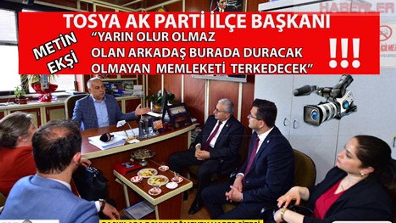 Samimi bir ortamda geçen görüşmede ilçenin ekonomik sorunları ve çözüm konusunda yapılması gerekenler konuşuldu. İYİ Parti Genel Başkan Yardımcısı ve İstanbul Milletvekili Hayrettin Nuhoğlu Tosya Ticaret ve Sanayi Odası Başkanı Metin Ekşi’ye 1 Nisan Sabahı İYİ Parti Belediye Başkanı Mustafa Güvenç ile ‘’ uyum içinde çalışmayı düşünüyor musunuz? ‘’diye sordu. Metin Ekşi milletvekili tarafından beklenmedik bir anda gelen soru karşısında kısa süreli şaşkınlık yaşasa da siyasi bir manevra ile ‘’ Sayın vekilim ben biraz önce belirtmiştim bende saflık çoktur. Benim Uyum sağlamayacağım kimse yoktur. Bu memlekette biz oturuyoruz, Yarın seçimden sonra olan arkadaşlar burada duracak, seçilemeyen arkadaşlar memleketi terk edecek’’ dedi.