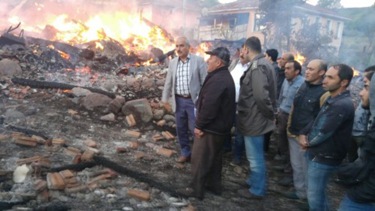 Tosya Dağ Çatağı Köyünde çıkan yangında 5 ev tamamen yandı. Belediye Başkanı Kazım Şahin olay yerinde.