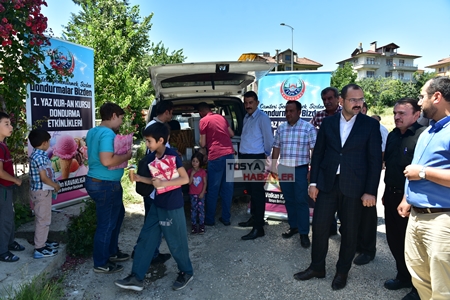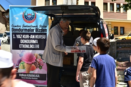 Tosya Belediyesi Kültür ve Sosyal İşler Müdürlüğü tarafından “Camileri Şenlendirmek Sizden Dondurmalar Bizden” sloganıyla başlatılan Kur’an Kursu öğrencilerine dondurma ikramı etkinliğine Belediye Başkanı Volkan Kavaklıgil, Başkan Yardımcısı Mustafa Mola ve belediye meclis üyeleri katılarak proje kapsamında 3 bin Kuran kursu öğrencisine dondurma ikramı yapılacağı belirtildi.