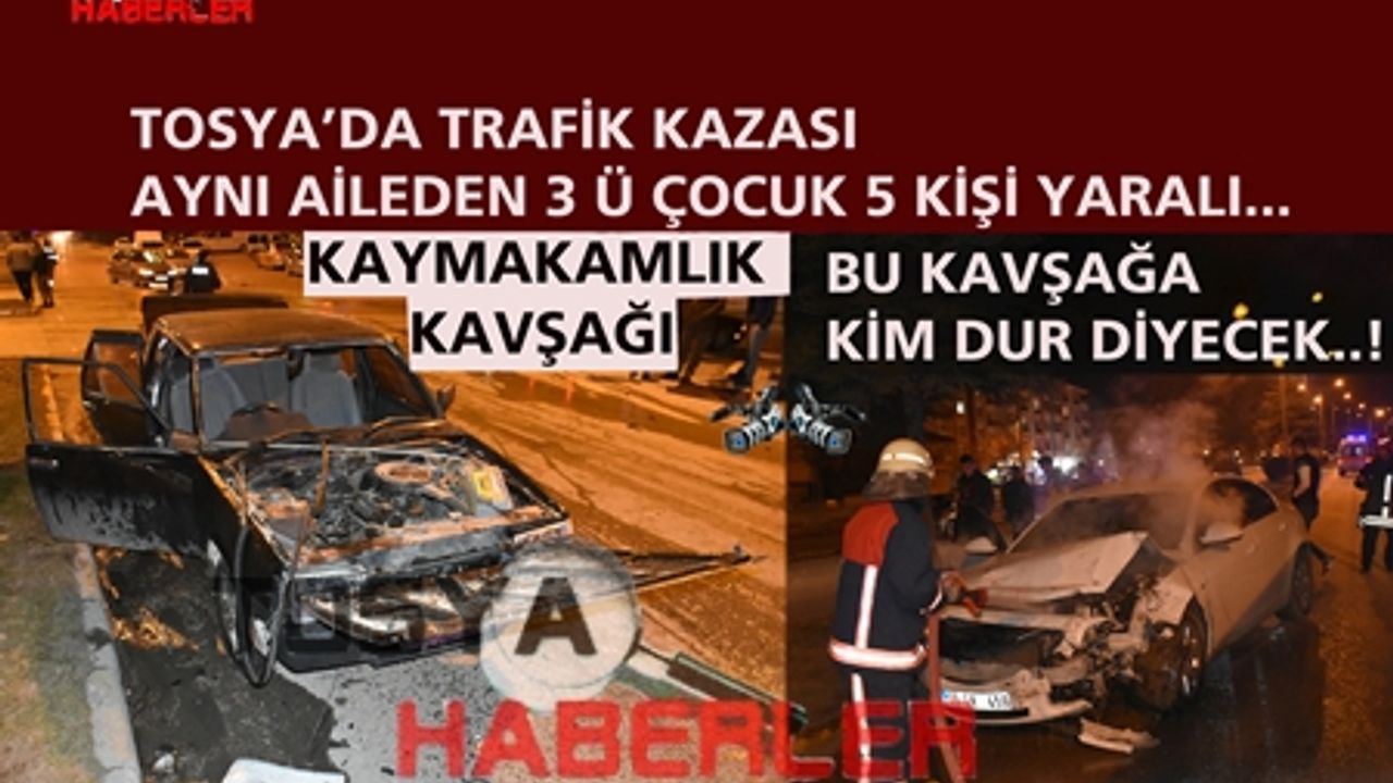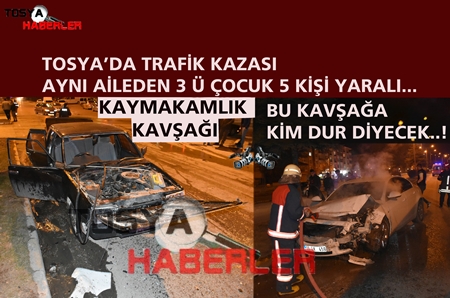 Kastamonu´nun Tosya İlçe merkezi Kaymakamlık kavşağında meydana gelen Trafik Kazasında 3’ü çocuk 5 kişi yaralandı.