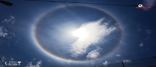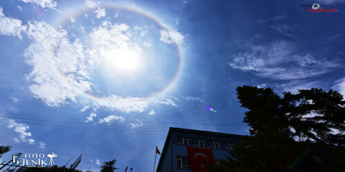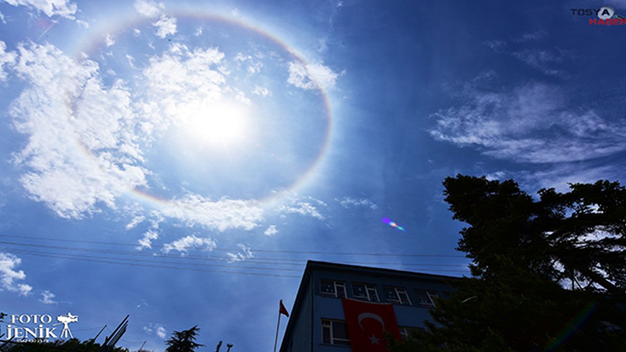 Kastamonu'nun Tosya İlçesinde öğlen saat 13:00 civarında gökyüzünde Güneş etrafında beliren ilginç gökkuşağı görenleri hayrete düşürdü.