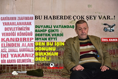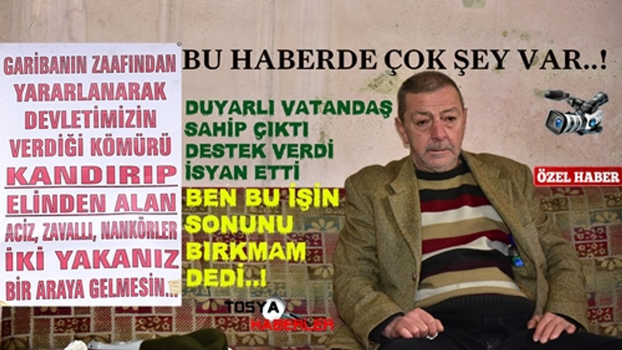 Tosya İlçesi Şeyh mahallesinde yalnız ve yokluk içerisinde yaşadığı evinde yaşamını sürdüren Erdoğan Gül (60) kendisine Tosya Kaymakamlığı Sosyal Hizmetler tarafından Mahalle muhtarlığınca verilen kömürü evine gelen bir takım kişiler tarafından sana para vereceğiz diyrek kandırılıp soğuk kuş günlerinde mağdur edildi.