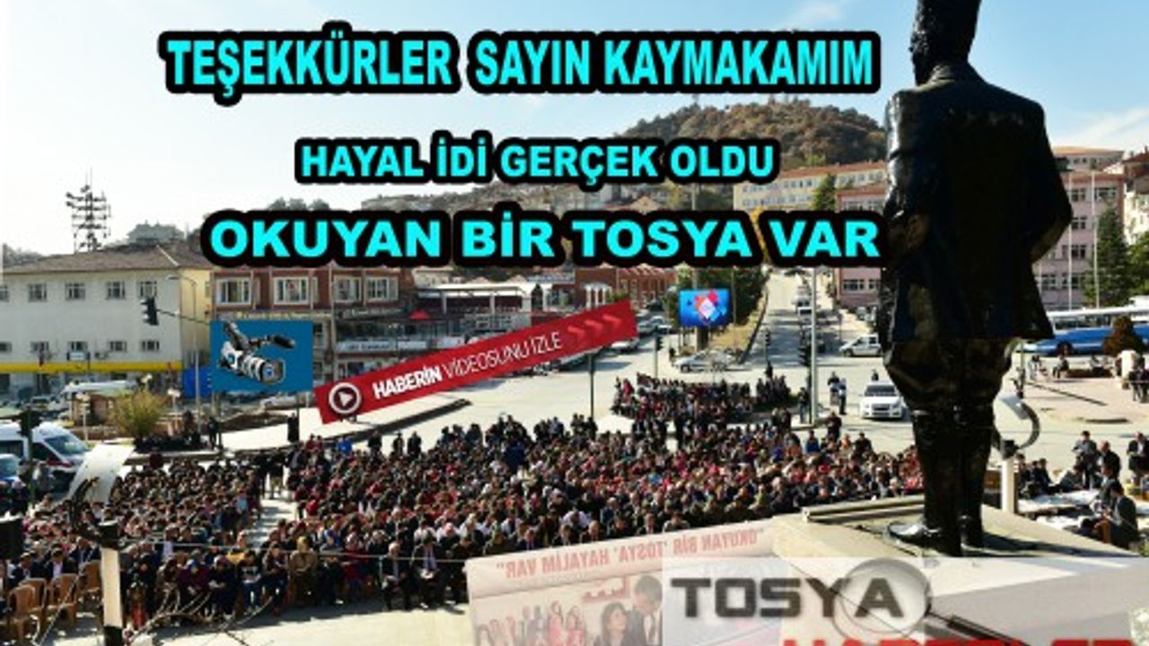 Şimdi Okuyan Bir Tosya Hayalim Var sloganının şahsımın başlatmış olduğu bu kampanyayı bir hayal olmaktan çıkartıp gerçekliğe kavuşturmak adına buradaki varlığınıza sonsuz teşekkür ediyorum şükranlarımı sunuyorum, bu öyle anlaşılıyor´ki okuyan bir Tosya hayali bir kampanya hayali bir kaymakamın hayali değil topyekün bir ilçenin topyekün bir Tosya´nın hayali olmuş hepinize teşekkür ederim hepinize şükranlarımı sunuyorum.