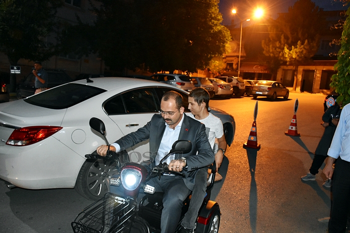 Belediye Hizmet binası önünde Samet ve ailesini misafir eden Başkan Volkan Kavaklıgil aile ile yaptığı kısa sohbet sonrası Samet ile birlikte Akülü Bisiklete binerek çarşı içinde kısa bir tur attı.