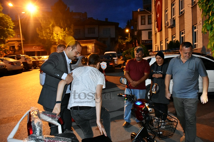 Kastamonu’nun Tosya ilçesi Akbük Köyünde ikamet eden ve yakalandığı amansız hastalıkla mücadele eden 18 yaşındaki Samet Daban’a elektrikli bisiklet sözü veren Belediye Başkanı Volkan Kavaklıgil akşam saatlerinde Samet’ein hayallerini gerçekleştirerek elektrikli bisikleti teslim etti.