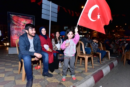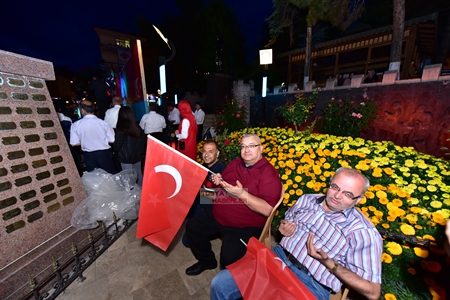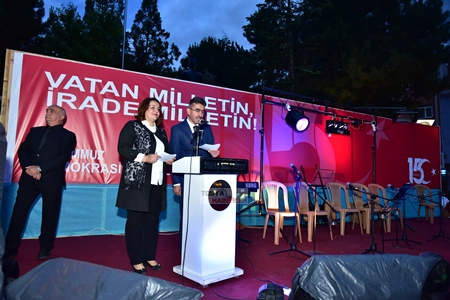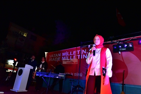 Meydandaki etkinlikler, saygı duruşunda bulunulması ve hep bir ağızdan coşkuyla İstiklal Marşı'nın okunmasıyla başladı. Şehitler için Kuran tilaveti okunması ve duaların edilmesinin ardından, protokol konuşmalarına geçildi.