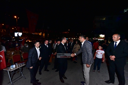 BİNLERCE TOSYALI MEYDANA AKIN ETTİ Cumhuriyet Meydanı'nda 15 Temmuz Demokrasi ve Milli Birlik Günü nedeniyle düzenlenen programa, Tosya Kaymakamı D. Pişkin,Tosya Belediye Başkanı Volkan Kavaklıgil,Cumhuriyet Başsavcısı Emre Şükrü Acar, İlçe Emniyet Müdür V.Cenk Demir,İlçe Jandarma Komutanı J. Asb.Kd.Bşvş. Emin Eyican,Hakim Adem Orhan ,Cumhuriyet Savcıları Serhat Gürbulak,Ali Duyar ve Onur Gülbahar,AK Parti İlçe Başkanı Metin Ekşi, MHP İlçe Başkanı Dündar Özurgancı,CHP ilçe Başkanı İsmail Okuducu, sivil Toplu kuruluşları ve binlerce Tosyalı katıldı.
