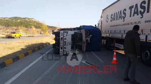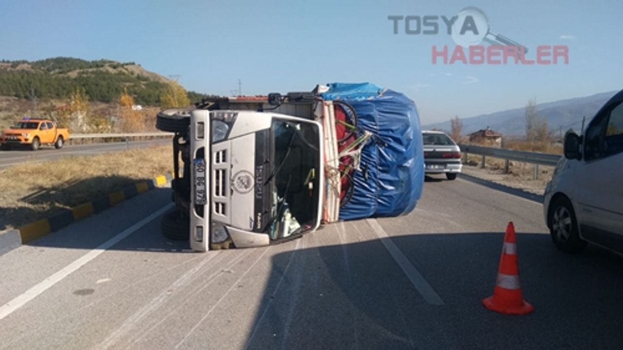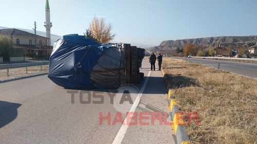 Edinilen bilgilere göre Samsun istikametinden Tosya istikametine seyir halinde olan M.K. İdaresindeki 60 BG 97 plakalı kamyon Çaykapı kavşağını geldiği sırada sürücünün direksiyon hâkimiyetini kaybetmesi sonucu orta refüje çarparak devrildi. Meydana gelen Trafik kazasında Kamyon sürücüsü M. K. (67) hafif yaralandı.
