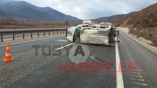 Edinilen bilgilere göre ilk kaza Tosya istikametinden İstanbul istikametine seyir halinde olan Erkan A. İdaresindeki 55 ADT 16 plakalı kamyonet Akbük Köyü mevkiinde sürücünün direksiyon hâkimiyetini kaybetmesi sonucu Tuğla fabrikası depo alanına girerek takla attı.