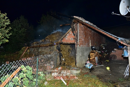 Yangıda, samanlık olarak kullanılan bina kullanılamaz hale gelirken güvenlik güçleri yangınla ilgili soruşturma başlattı.