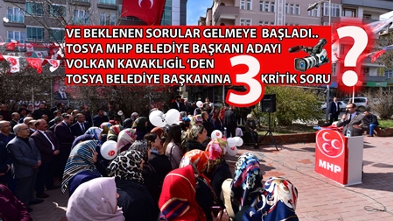 Açılışta konuşan Milliyetçi Hareket Partisi Kastamonu Tosya İlçesi Belediye Başkan Adayı Volkan Kavaklıgil Tosya Belediyesi Başkanı Kazım Şahin'e 3 soru yöneltti.