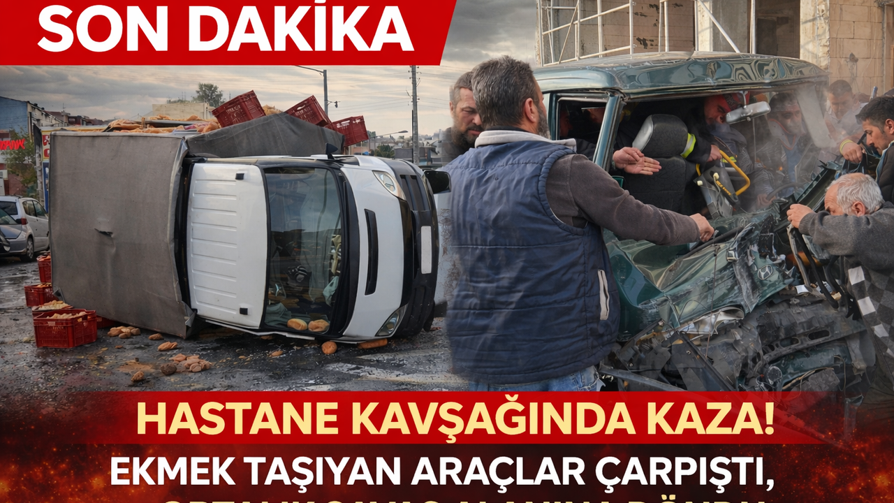 HASTANE KAVŞAĞINDA KAZA! EKMEK TAŞIYAN ARAÇLAR ÇARPIŞTI, ORTALIK SAVAŞ ALANINA DÖNDÜ