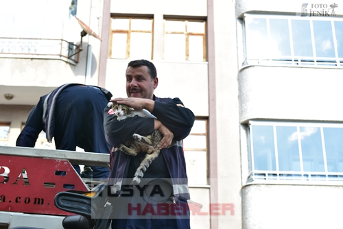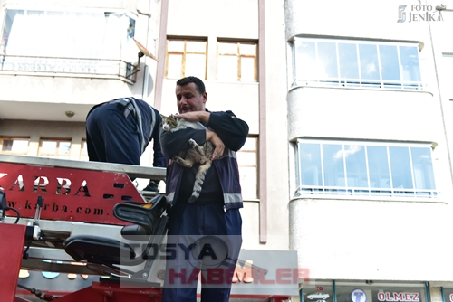 Yavru kedinin mahsur kaldığı ağaçtan Tosya İtfaiyesi ekiplerince kurtarılmasının ardından öğrenciler alkış tutarak itfaiye erlerine teşekkür etttiler.