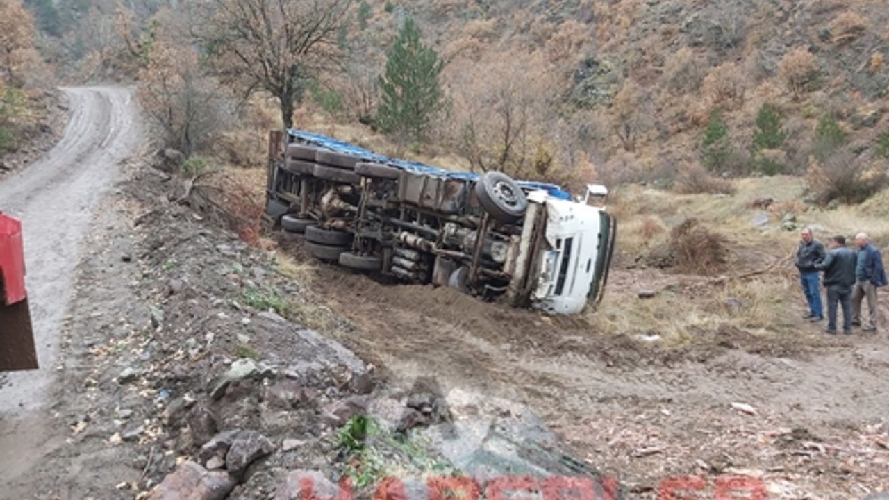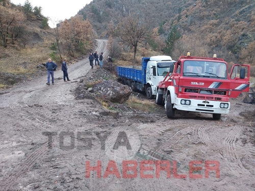 TOSYA'DA TOMRUK YÜKLÜ KAMYON DEVRİLDİ..