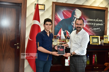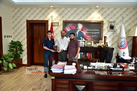 Tosya Belediye Başkanı Volkan Kavaklıgil'i makamında ailesi ile birlikte ziyaret eden genç yazar Mustafa Pazvat Başkan Kavaklıgil'e Osmanlı tarihi içerikli İKRA isimli kitabını hediye etti.