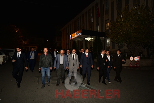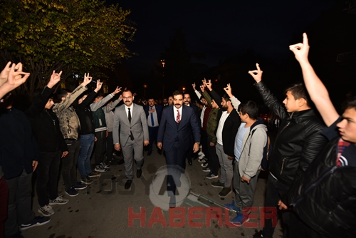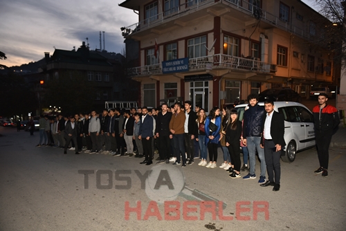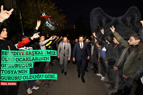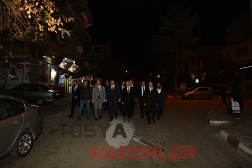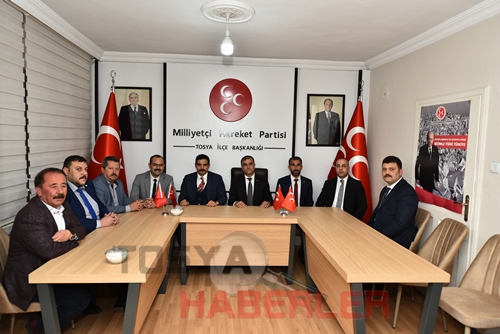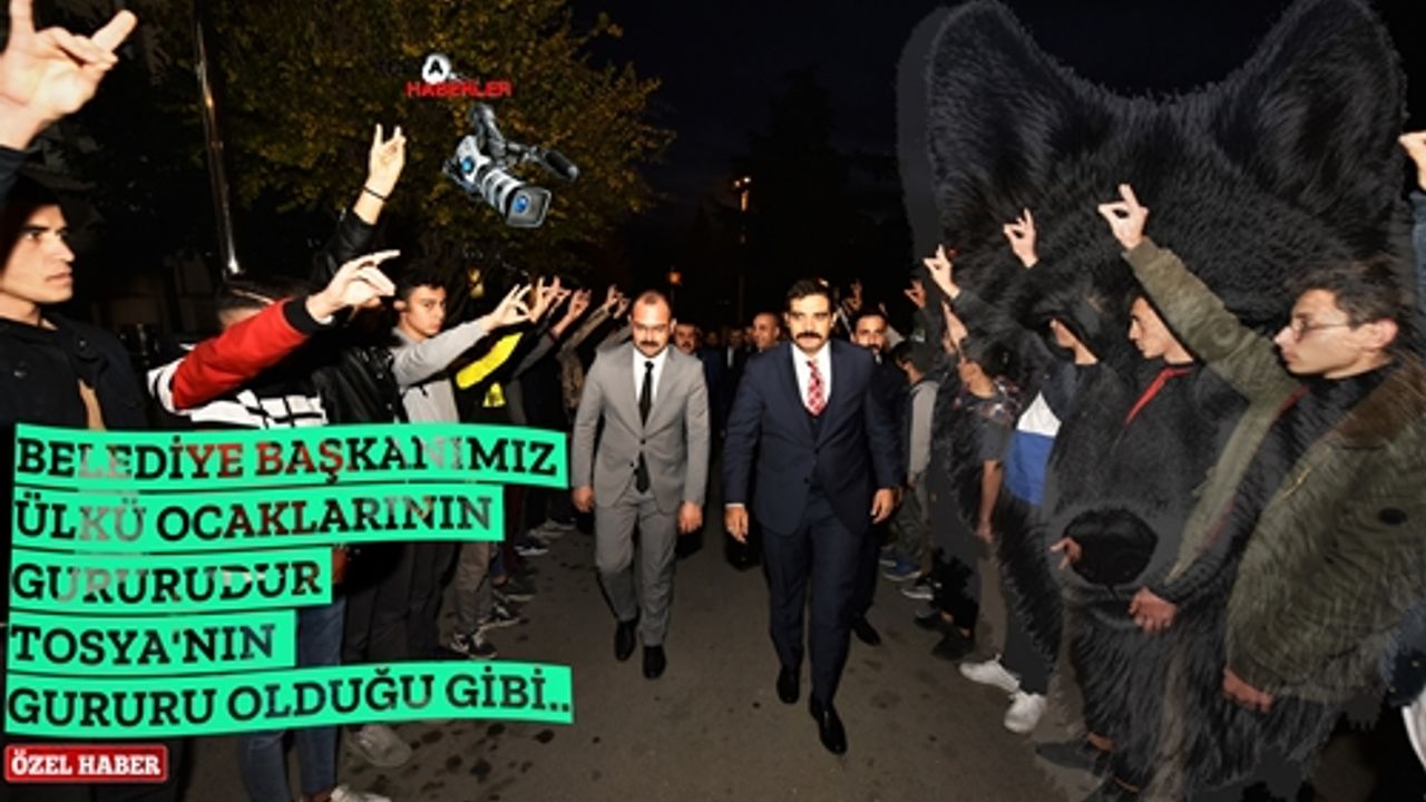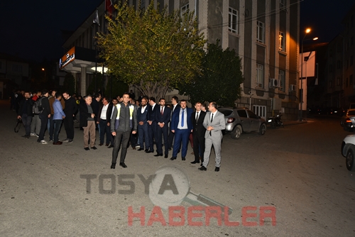 Dr. Sinan Ateş'i Tosya Belediyesi hizmet binası önünde Belediye Başkanı Volkan Kavaklıgilin yanı sıra MHP Tosya İlçe Teşkilatı ve Tosya Ülkü Ocakları yönetimi ve gençleri karşıladı.